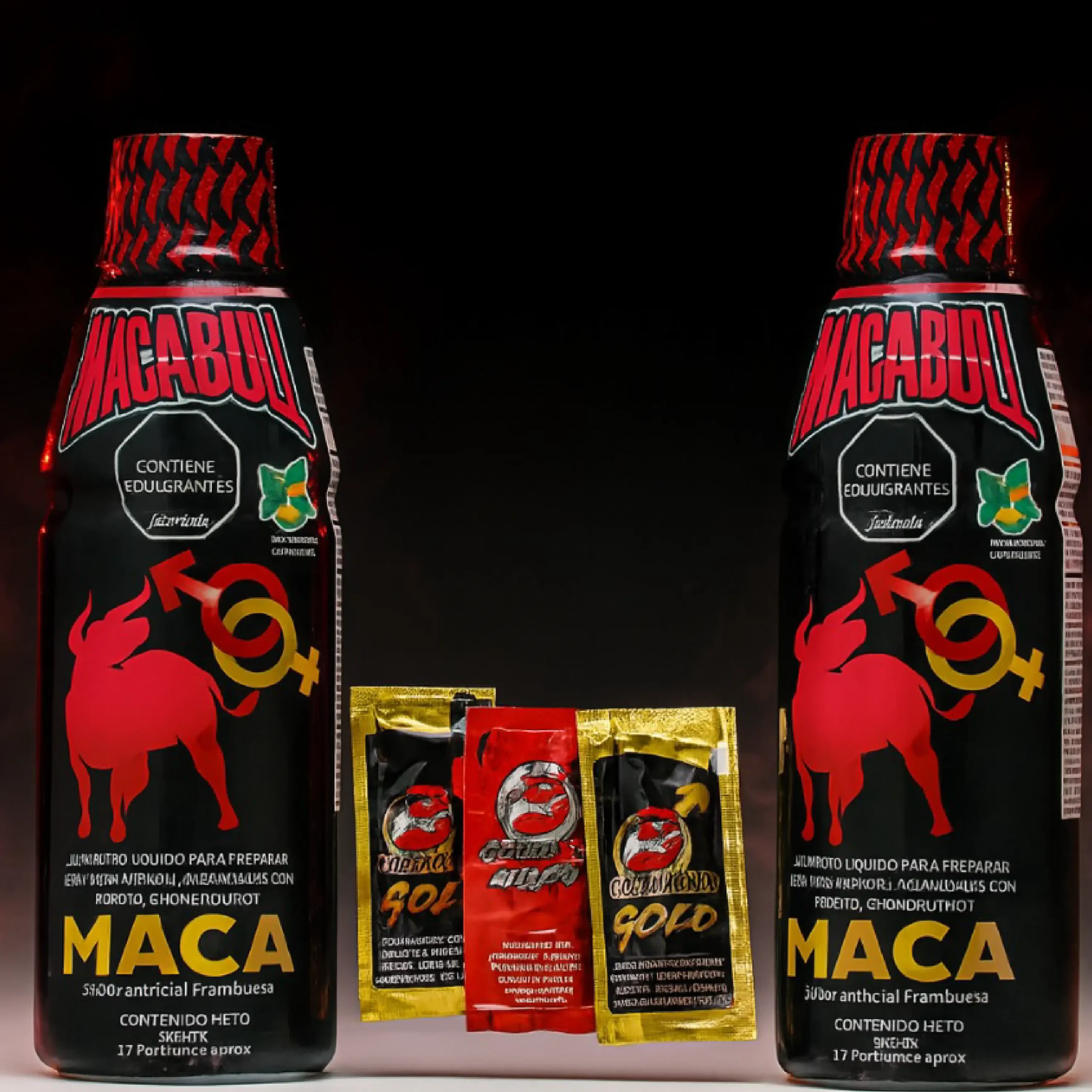 Recibe 2 tarros de Macabull, la fórmula líquida que despierta tu potencia natural, y además un obsequio de 3 pastas Groben Gold o Maxxx para llevar tu energía al siguiente nivel.